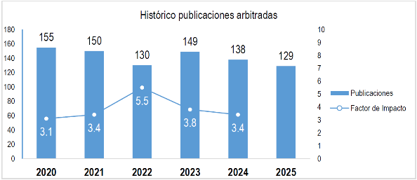 | Método de cálculo | Factor de impacto de las publicaciones arbitradas / Número total de publicaciones arbitradas |