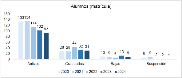 Los programas de posgrado transitan en la actualidad por buen camino pero, también se debe reconocer que tenemos todavía mucho trabajo por delante, necesitamos afianzar la colaboración interinstitucional con CPI o IES a través de proyectos de tesis dirigidos por personal de CyT de dos o más instituciones, promover y facilitar la movilidad estudiantil entre los centros participantes, fomentar la impartición de talleres o clases magistrales impartidas por los expertos de prestigio, que todas las instituciones tenemos, y a las que puedan asistir toda la comunidad estudiantil de los posgrados que así lo deseen, tratar de implementar espacios virtuales en las que las y los estudiantes puedan interactuar, compartir experiencias, generar foros de discusión académica. Estamos convencidos que estas acciones pueden ayudar a que las y los estudiantes adquieran las habilidades blandas esenciales para su futuro. En la siguiente gráfica se muestra la distribución de alumnos en los últimos cinco años.