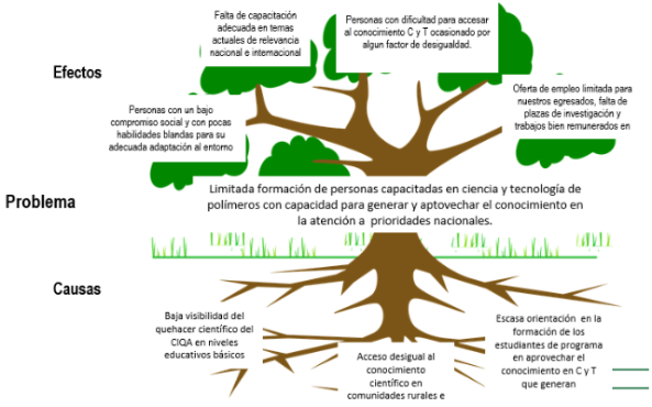 A través del marco lógico, se identificaron tanto los factores estructurales que limitan la formación científica de alto nivel, como aquellos que restringen el acceso equitativo a estas oportunidades para diversos sectores de la población. Asimismo, se destacó la necesidad de que los estudiantes egresados del CIQA cuenten con herramientas no sólo para la investigación, sino también para la transferencia del conocimiento, el emprendimiento científico y la generación de nuevas empresas de base tecnológica.