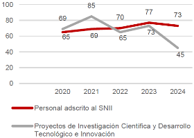 En una segunda línea de análisis, el diagnóstico institucional se enfocó en la investigación científica, tanto básica como aplicada, como eje fundamental del quehacer del CIQA. Esta dimensión resulta crucial para consolidar su liderazgo en los campos estratégicos de los polímeros, las agrociencias y otras áreas emergentes de alto impacto, así como para responder de manera efectiva a las prioridades nacionales en CTI.