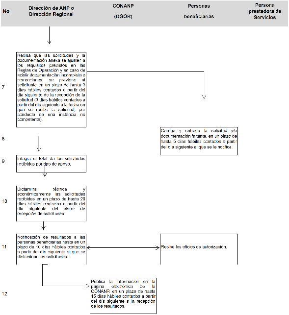 7. Una vez concluido el plazo para la recepción, que son 15 (quince) días hábiles contados a partir del día siguiente de la fecha de esta publicación, la CONANP, en un plazo no mayor a 20 (veinte) días hábiles contados a partir del día siguiente al cierre de recepción de solicitudes, dictaminará cada una de éstas con la finalidad de determinar el orden de prioridad para acceder a los subsidios del PROCODES, y en su caso, en un plazo de 10 (diez) días hábiles contados a partir del día siguiente a la dictaminación, autorizará la designación como persona beneficiaria.