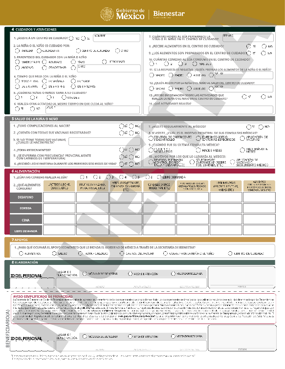 | 4. Niña o niño con algún tipo de discapacidad. | 4. Cuando la discapacidad no sea visible para las personas prestadoras de servicios o servidoras públicas de la Secretaría Bienestar, se requerirá el escrito que avale la condición médica por el médico tradicional de la comunidad. |