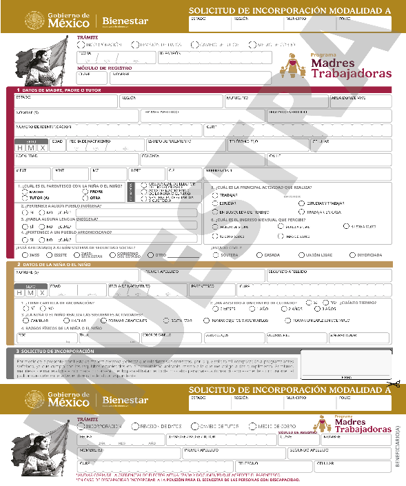 Solicitud de Incorporación del Programa de Apoyo para el Bienestar de las Niñas y Niños, Hijos de Madres