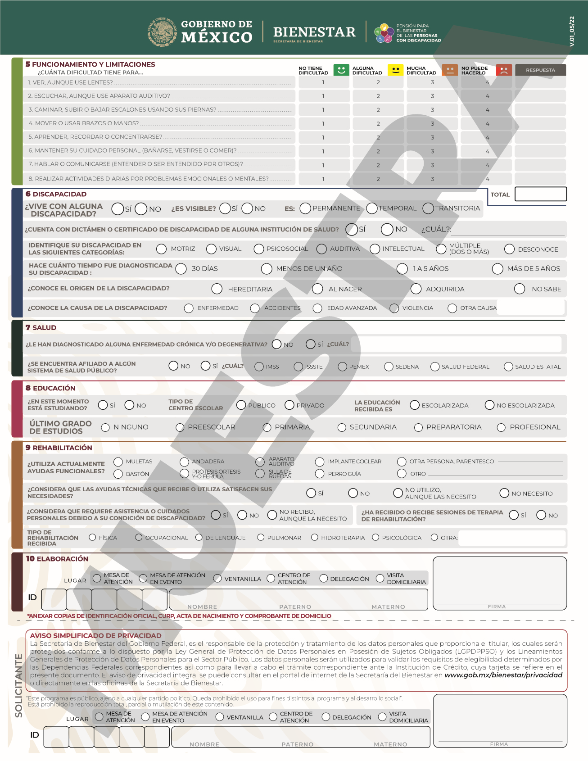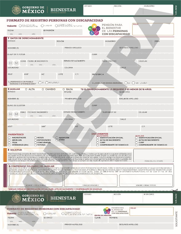 PROGRAMA: Pensión para el Bienestar de las Personas con Discapacidad Permanente.