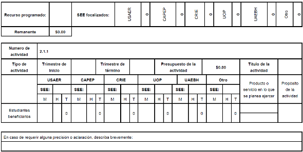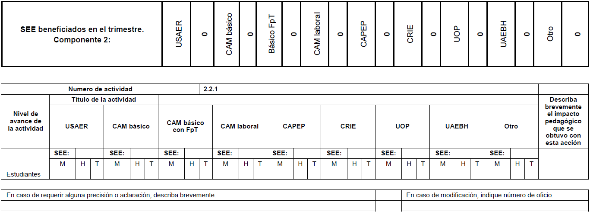 Anexo al Avance Físico Financiero (AAFF).- Documento que realiza la AEL y la AEFCM, para informar presupuestalmente, de manera trimestral a la DGDCyPEI, las acciones realizadas por componente, alineadas al PAT.
