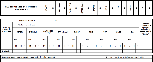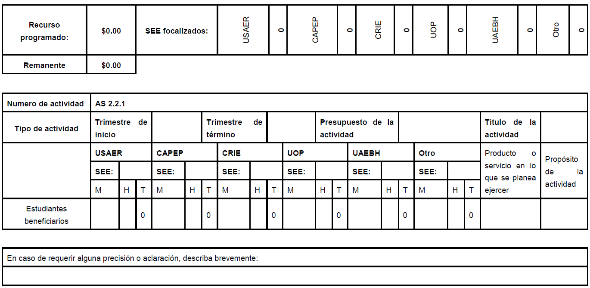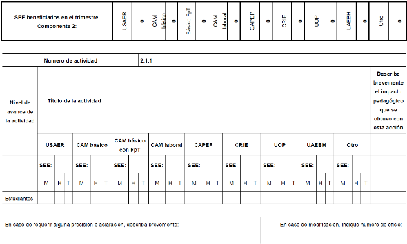 | 2 Acciones de atención complementaria para Estudiantes con discapacidad y/o con aptitudes sobresalientes | | | | |