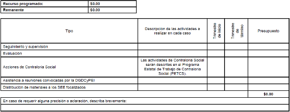 | COMPONENTE (7) | ACCIÓN VALIDADA O MODIFICADA EN PAT (8) | NOMBRE DE PROVEEDOR O RAZÓN SOCIAL (9) | IMPORTE COMPROMETIDO (10) | FECHA DEL CONTRATO (11) | FECHA DE ENTREGA DEL BIEN O SERVICIO (12) |