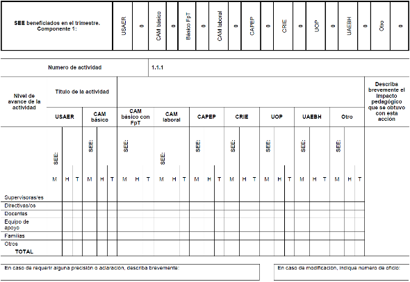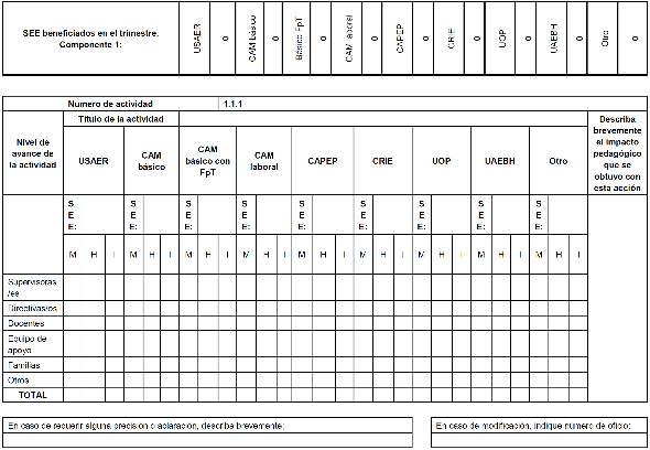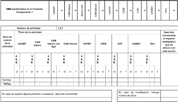 | 1 Acciones académicas para la atención educativa especializada a Estudiantes con discapacidad y/o con aptitudes sobresalientes | | | | |