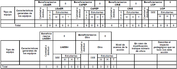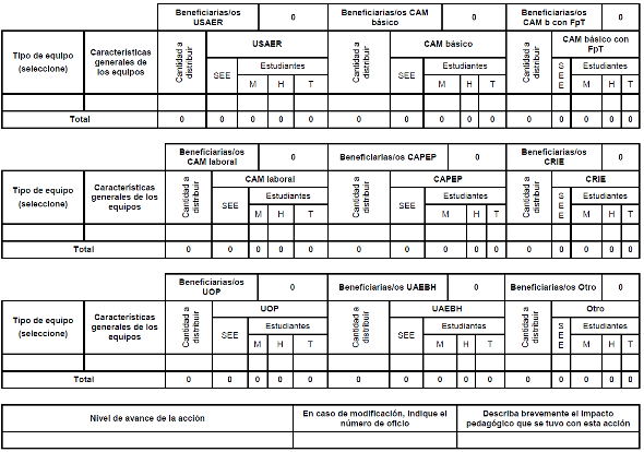 | 3 Equipamiento especifico en beneficio de Estudiantes con discapacidad y/o con aptitudes sobresalientes | | | | |