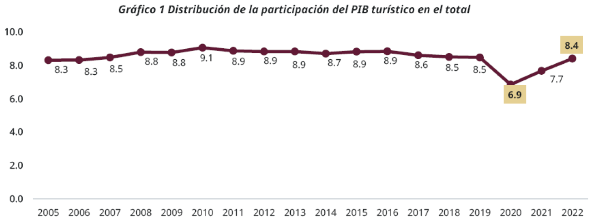 El turismo en México ha sido históricamente una industria clave en el desarrollo de la economía nacional, demostrando ser una herramienta esencial para promover el crecimiento económico y social del país, en este sentido, el sector turístico en los últimos 18 años ha tenido una participación promedio de 8.5% en el PIB nacional a pesar de la crisis sanitaria en el año 2020 cuyo aporte bajó a 6.9% y que, en tan sólo dos años, creció a 8.4% (SECTUR, 2024).