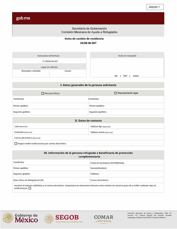 | 7 | SGOB-06-007 | Aviso de cambio de residencia. | FF-SGOB-06-007 | Anexo 7 |