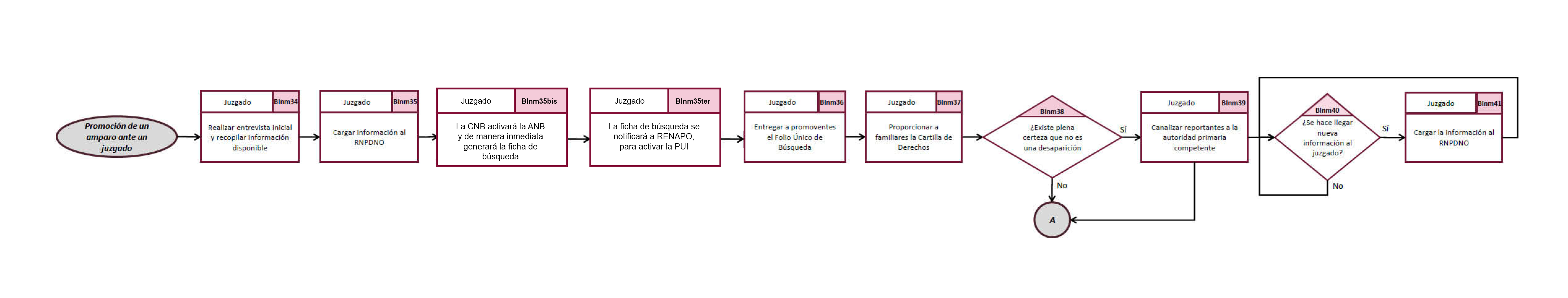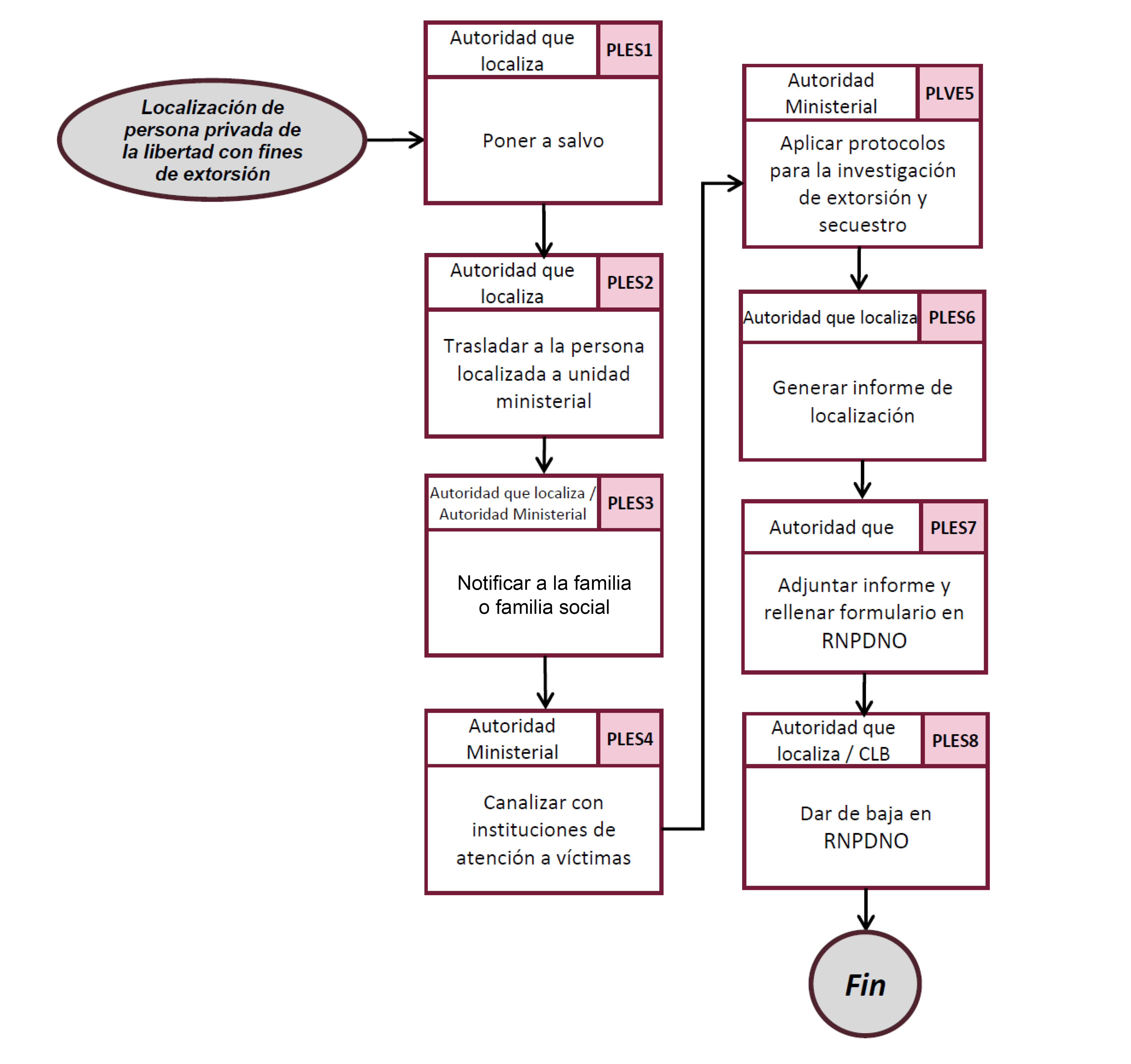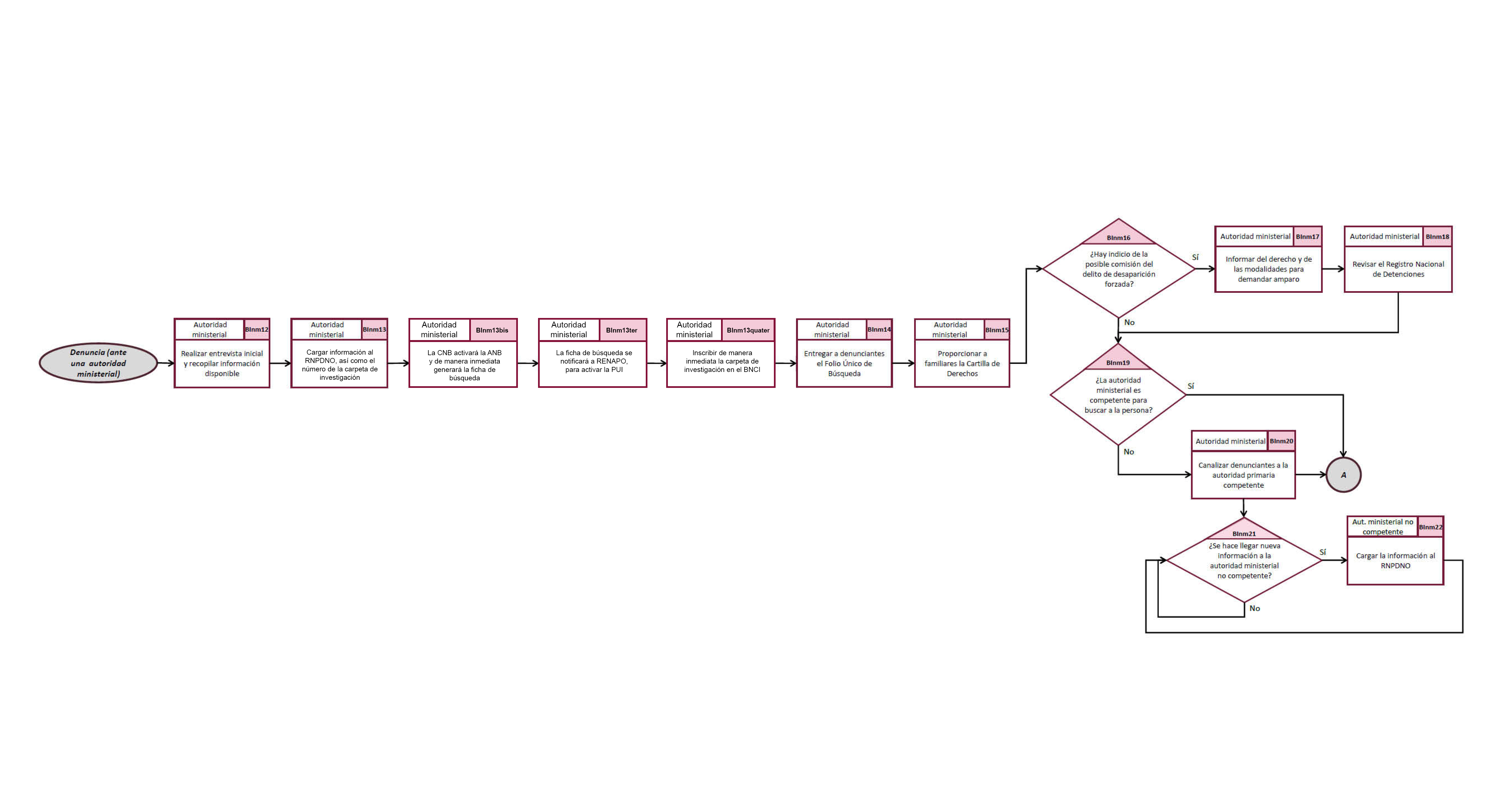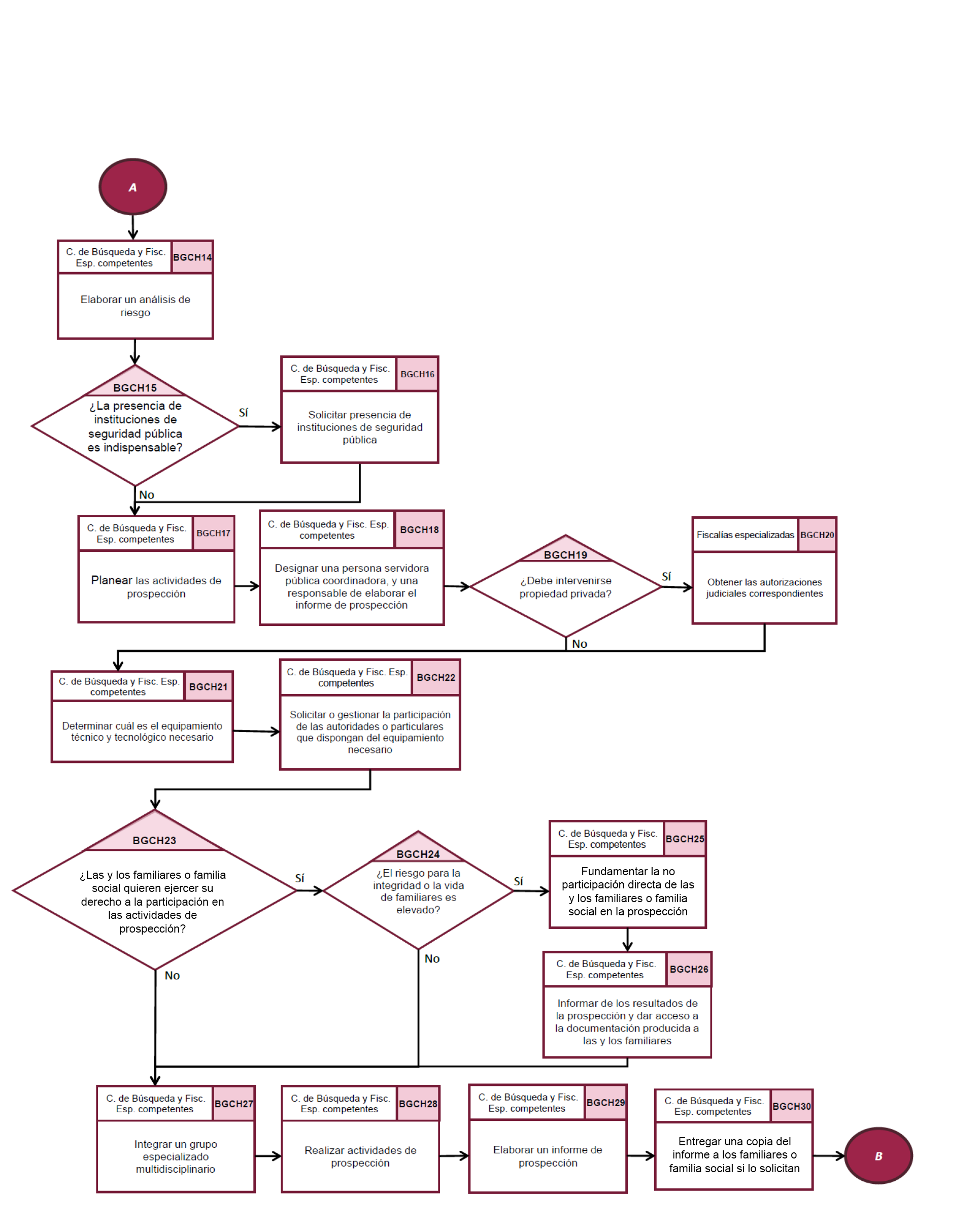 Agotados los análisis de documentación y de campo, se inició con los trabajos de construcción de las bases del protocolo a partir de un modelo de diseño de procesos organizacionales, es decir, del desarrollo de un macroproceso general para la búsqueda de personas, el cual implicó la delimitación de funciones, procesos y relaciones formales con el propósito de definir etapas.