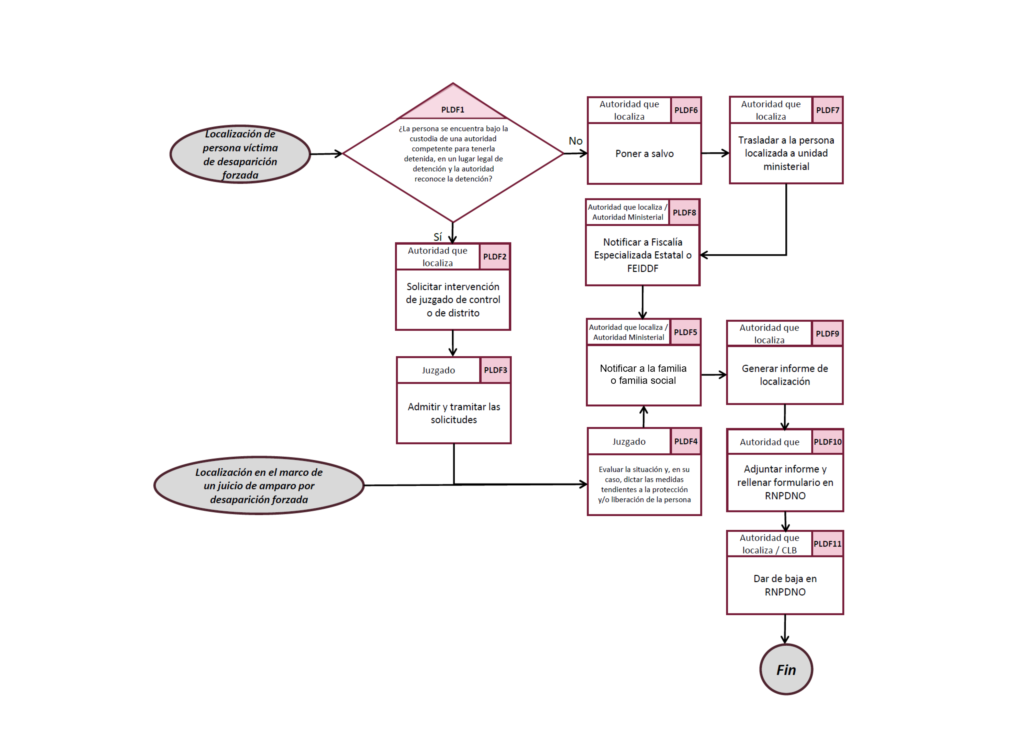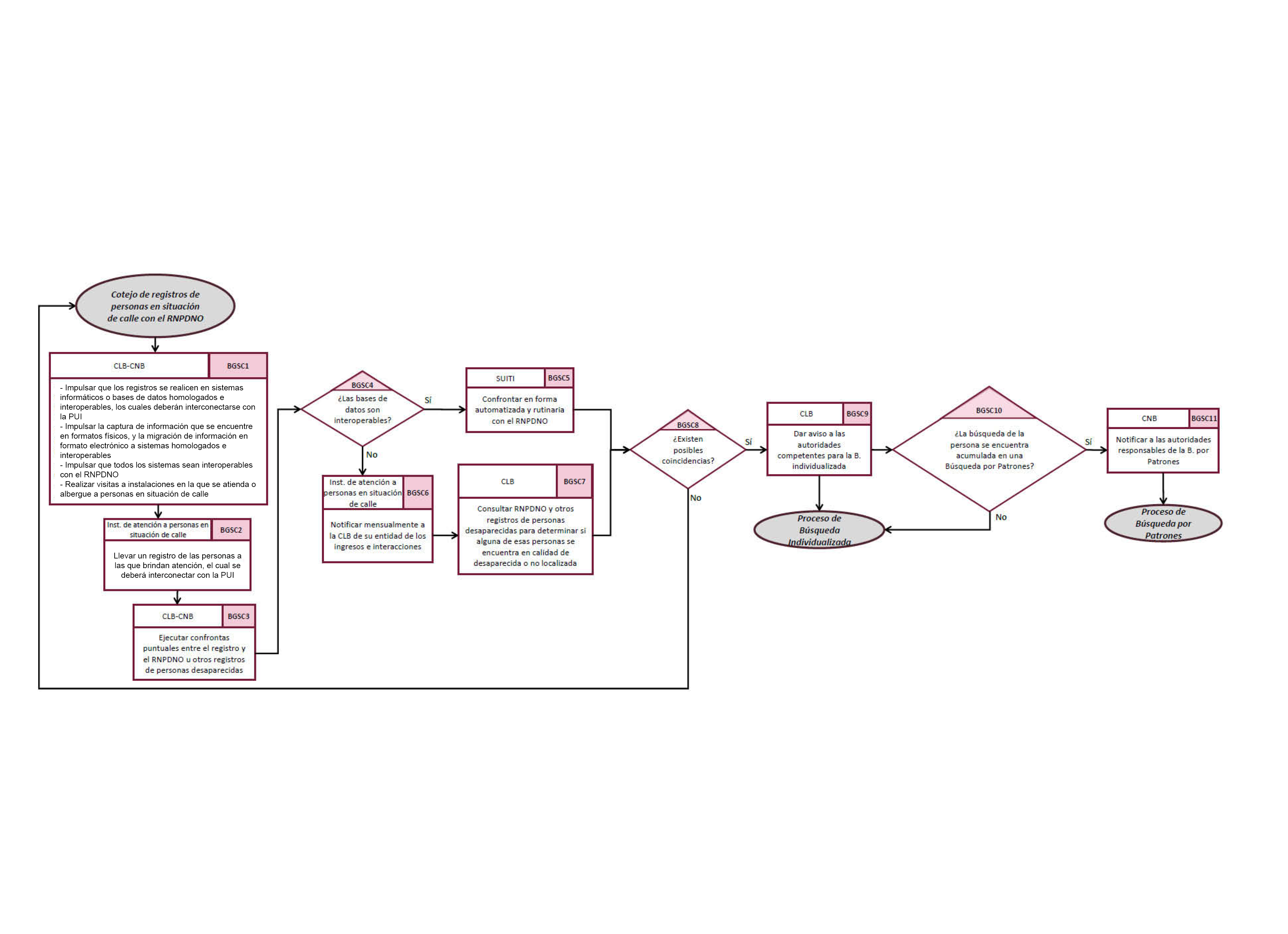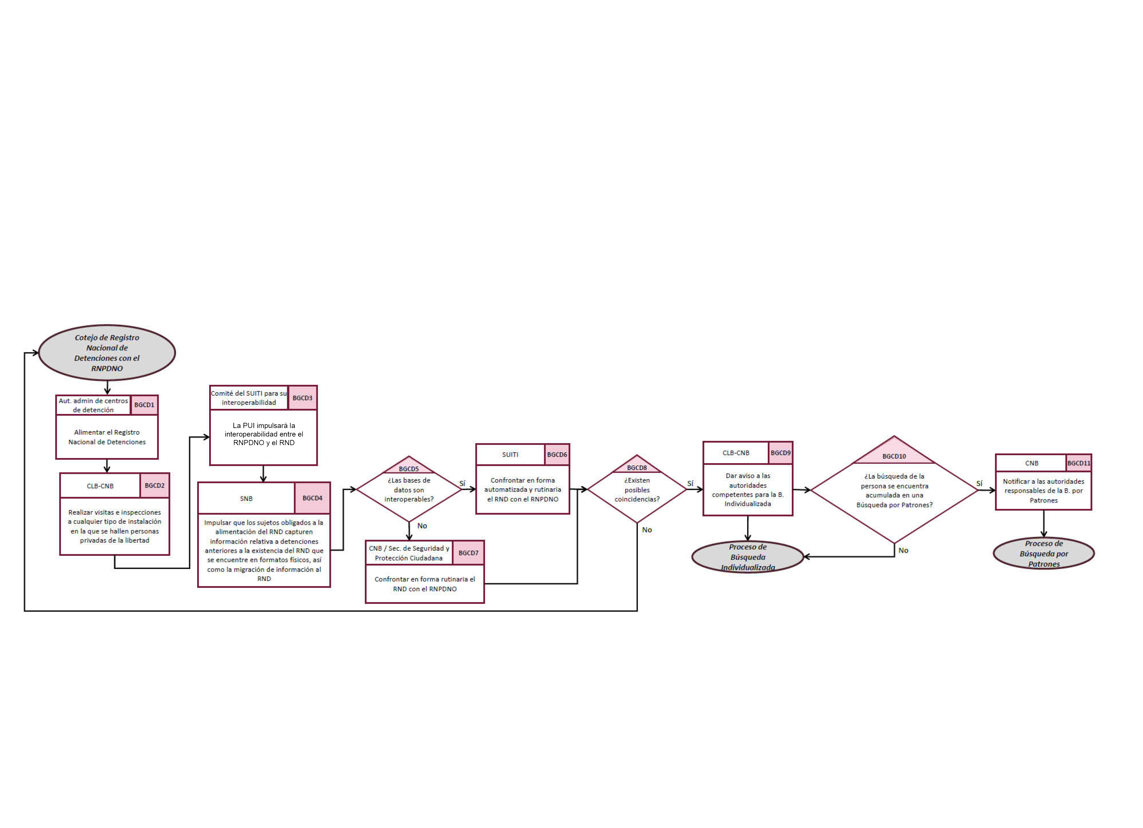 Para el diseño inicial se generaron mesas de trabajo dirigidas por personas facilitadoras especialistas en ingeniería de procesos y con la participación de personas expertas en la materia, integrantes de CLB, la CNB, y organismos internacionales. En estas mesas se analizaron casos concretos, así como los requerimientos de la LGD encaminados a la operación del Protocolo, desde una perspectiva nacional que incluya parámetros, conceptos y un entendimiento estandarizado adaptable a las necesidades técnicas y operativas de cada entidad federativa, con perspectiva de derechos humanos.