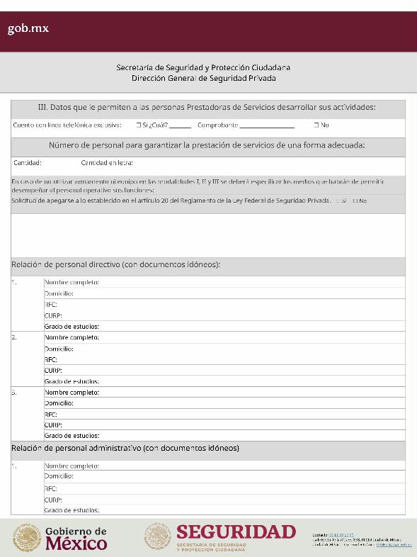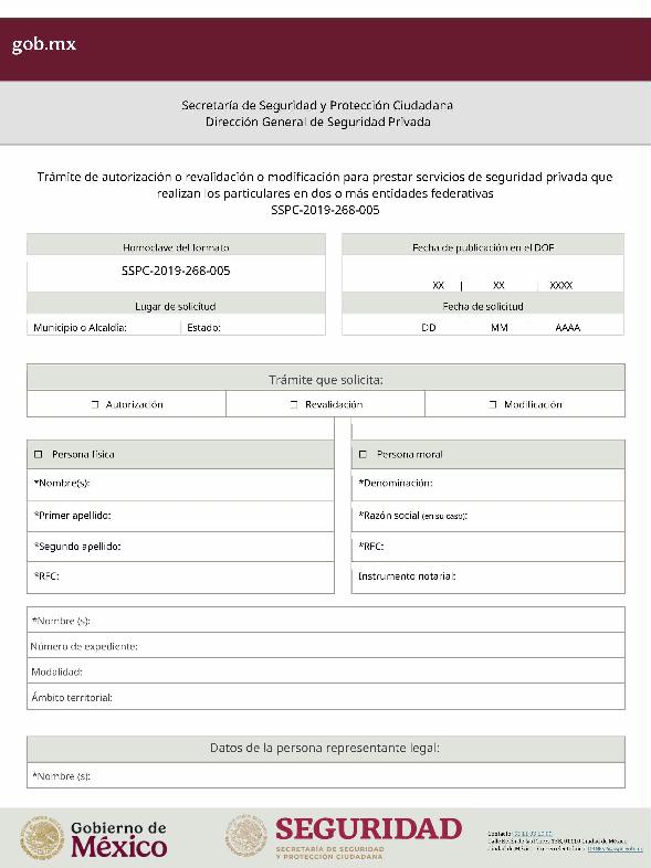 | 3 | SSPC-2019-268-005 | Trámite de autorización, revalidación y modificación de la autorización para prestar servicios de seguridad privada que realizan los particulares en dos o más entidades federativas | SSPC-2019-268-005 | Anexo III |