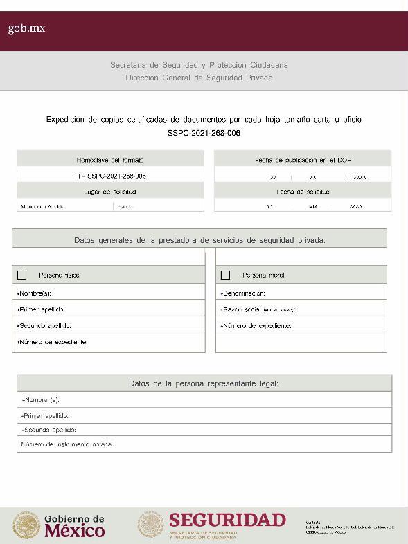 | 1 | SSPC-2021-268-006 | Expedición de copias certificadas de documentos, por cada hoja tamaño carta u oficio. | Se eliminan los siguientes requisitos: 1. Escrito libre. | 1. Formato de solicitud. 2. Comprobante de pago. |