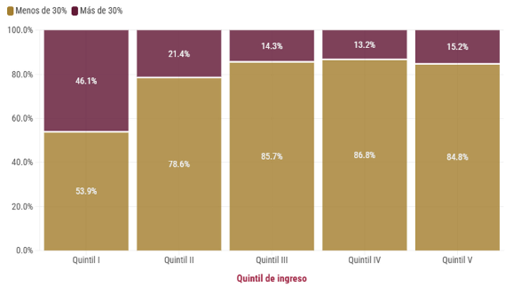 Gráfico 7. Distribución de hogares por quintiles de ingreso y pago de vivienda, 2024