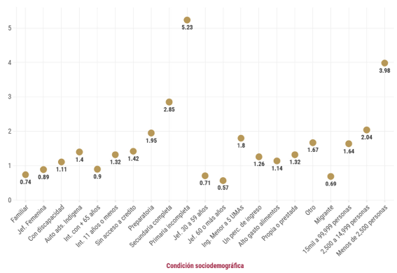 Gráfico 8. Razones de probabilidad de habitar en una vivienda en rezago por condición sociodemográfica
