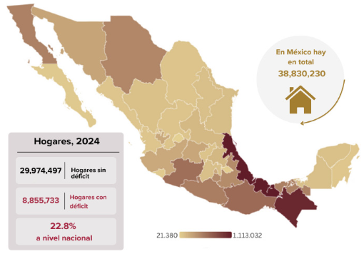 Mapa 1. Distribución de hogares con déficit de vivienda en México, 2024