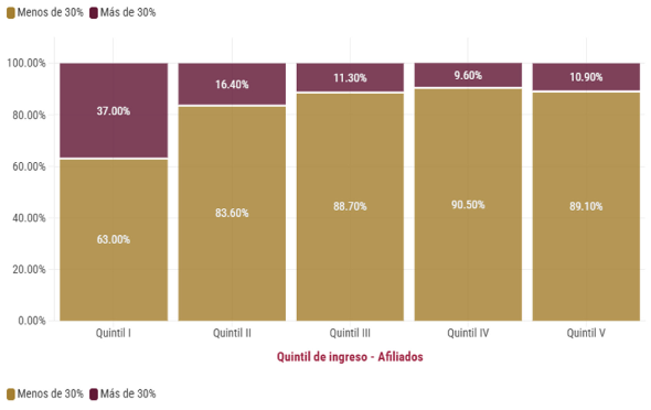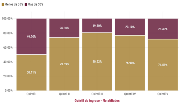 Gráfico 5. Hogares por quintiles de ingreso laboral y pago de vivienda, afiliados y no afiliados (Porcentaje)