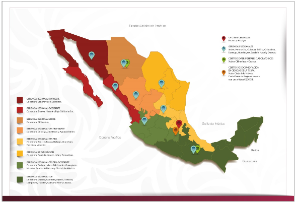 Sus oficinas centrales están ubicadas en la ciudad de Pachuca de Soto, Hidalgo, y cuenta con siete Gerencias Regionales, una Gerencia de Evaluación, dos Centros Experimentales (uno en Chihuahua y uno en Oaxaca) y un Centro de Documentación en Ciencias de la Tierra (CEDOCIT), ubicado en la Ciudad de México. Tanto las oficinas centrales como algunas de las gerencias regionales, cuentan con una oficina CEDOCIT para dar atención al público en general.